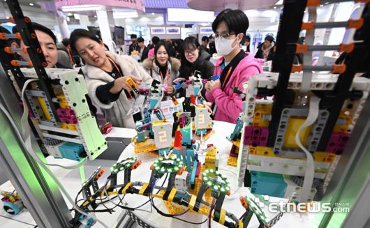 국내 최대 규모의 교육·에듀테크 전문 전시 제23회 대한민국 교육박람회가 21일 서울 강남구 코엑스에서 열렸다. 참관객이 퓨너스의 피지컬 컴퓨팅 교구 '레고 에듀케이션 사이언스'를 살펴보고 있다. 이동근기자 foto@etnews.com [Copyright © 전자신문. 무단전재-재배포금지]