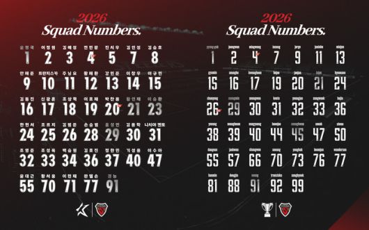 [인터풋볼=신동훈 기자] 포항 스틸러스가 2026시즌 선수단 배번을 공개했다.