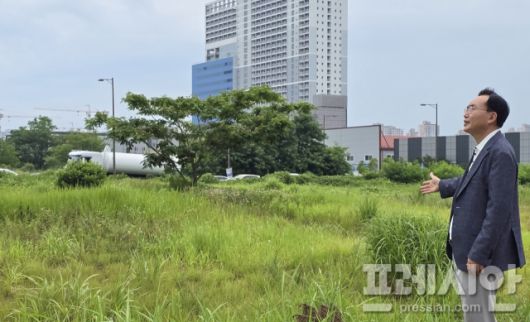 ▲오는 2030년 개관 예정인 국립나주에너지전문과학관 부지 앞에서 윤병태 나주시장이 건립 계획 등을 설명하고 있다.ⓒ나주시 |