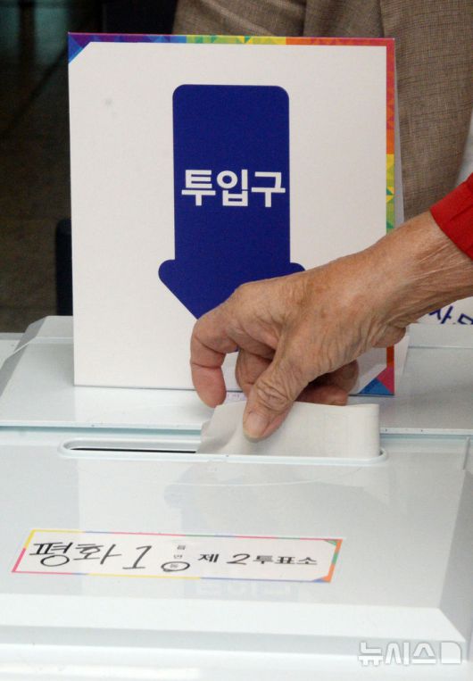 [전주=뉴시스] 김얼 기자 = 제21대 대통령선거일인 3일 전북 전주시 완산구 평화1동 제2투표소(전주남중학교)를 찾은 시민들이 투표를 하고 있다. 2025.06.03. pmkeul@newsis.com |
