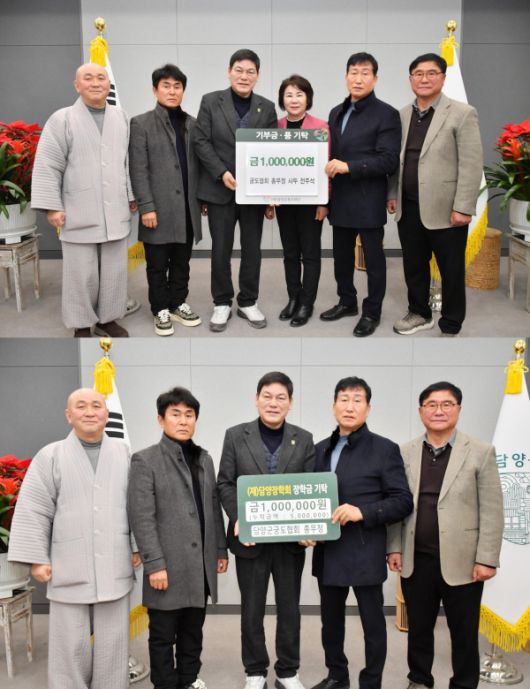 담양군 궁도협회(사두 전주석)는 지난 21일 담양의 미래를 이끌어갈 지역 인재와 취약계층을 위해 사용해 달라며 (재)담양장학회(이사장 정철원)에 장학금 100만 원, (재)담양군복지재단(이사장 이정옥)에 후원금 100만 원을 기탁했다. [사진=전라남도 담양군][전남 광주=팍스경제TV] 전라남도 담양군 궁도협회(사두 전주석)는 지난 21일 담양의 미래를 이끌어갈 지역 인재와 취약계층을 위해 사용해 달라며 (재)담양장학회(이사장 정철원)에 장학금 1백만 원, (재)담양군복지재단(이사장 이정옥)에 후원금 1벡만 원을 기탁했습니다.