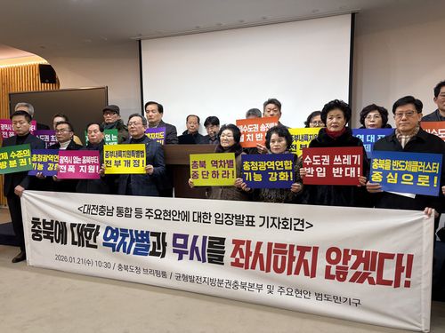 이어 "일방적인 광역시도 행정통합에 반대하는 동시에 소외된 충북을 비롯한 중부내륙의 발전을 위해 중부내륙지원특별법 전부 개정과 충북특별자치도 설치 및 지원법 제정을 통해 전폭적으로 지원할 것을 정부와 정치권에 강력히 요구한다"고 덧붙였다.