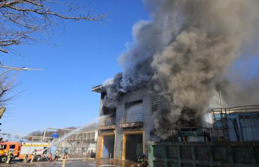 21일 낮 12시 55분께 경기 연천군 청산면의 한 폐수처리장에서 불이 났다.