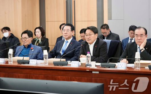 (광주=뉴스1) 이수민 기자 = 강기정 광주광역시장과 김영록 전남지사가 21일 오전 국회의원회관 제2세미나실에서 '광주전남 통합 특별법 검토 시도지사-국회의원 2차 조찬 간담회'에 참석해 법률안의 핵심 특례 사항과 입법 전략 등을 논의하고 있다. (광주광역시 제공. 재판매 및 DB 금지) 2026.1.21/뉴스1