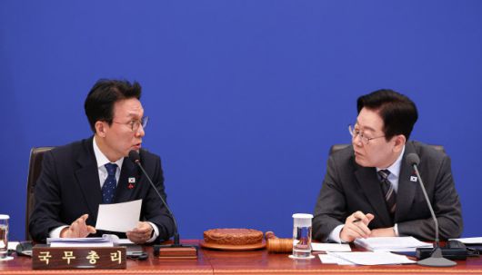 이재명 대통령이 20일 청와대에서 열린 국무회의에서 김민석 국무총리와 대화하고 있다 (사진=청와대통신사진기자단] |
