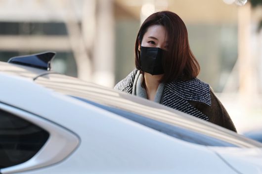 김병기 의원의 공천헌금 수수·아들 부정 편입 의혹의 핵심으로 지목되는 이지희 동작구의원이 21일 오후 서울 마포구 서울경찰청 공공범죄수사대에서 피의자 신분으로 조사를 받기 위해 출석하고 있다./뉴스1 |