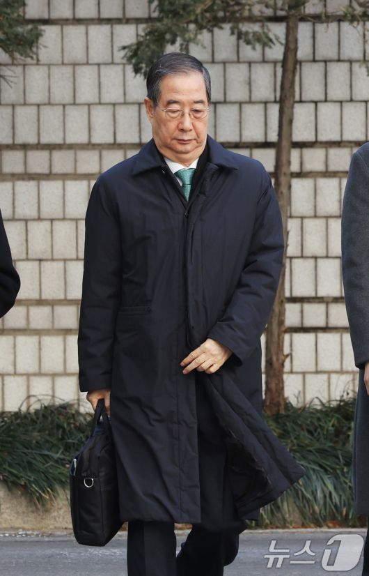 (서울=뉴스1) 박지혜 기자 = 한덕수 전 국무총리가 21일 오후 서울 서초구 서울중앙지법에서 열린 내란 우두머리 방조, 내란 중요임무 종사 혐의 사건 1심 선고공판에 출석하고 있다. 2026.1.21/뉴스1