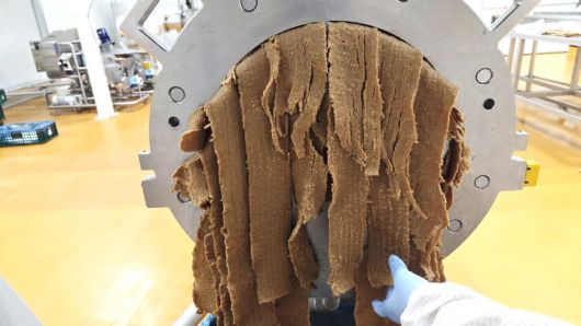 [세종=뉴시스] 농촌진흥청은 국산 콩 소비를 늘리기 위해 '대원콩'을 활용한 식물조직단백(TVP) 제조 기술을 개발했다고 21일 밝혔다. 사진은 스트립형 TVP 모습. (사진=농진청 제공) 2026.01.21. photo@newsis.com *재판매 및 DB 금지 |