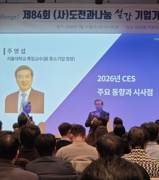 주영섭 교수는 (사)도전과나눔이 21일 서울 역삼동 GS타워에서 개최한 제84회 기업가정신포럼에서 'CES 2026의 시사점과 우리의 대응 방향'을 주제로 한 강연에서 "(많은 혁신상 수상을 통해)한국이 세계의 혁신을 주도하고 있다는 주장은 섣부른 판단"이라면서 이같이 말했다.