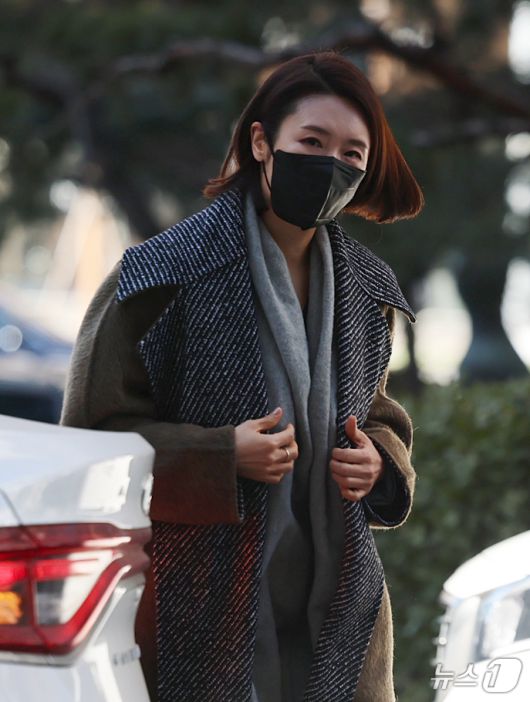 (서울=뉴스1) 오대일 기자 = 김병기 의원의 공천헌금 수수·아들 부정 편입 의혹의 핵심으로 지목되는 이지희 동작구의원이 21일 오후 서울 마포구 서울경찰청 공공범죄수사대에서 피의자 신분으로 조사를 받기 위해 출석하고 있다. 2026.1.21/뉴스1