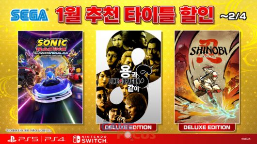 세가퍼블리싱코리아(대표 사이토 고)는 PlayStation™Store 및 닌텐도 e숍에서 판매 중인 일부 PlayStation®5/PlayStation®4/Nintendo Switch™용 타이틀을 기간 한정으로 특별 가격에 판매하는 'SEGA 1월 추천 타이틀 할인'을 개최 중이다.