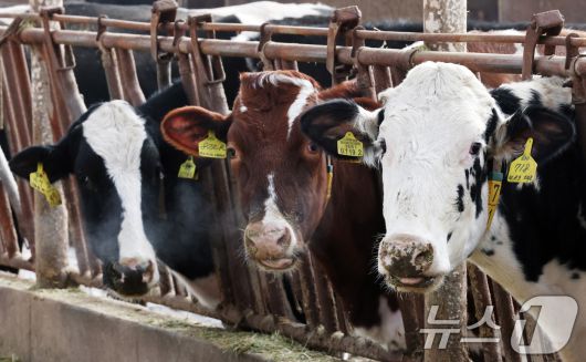 (화성=뉴스1) 김영운 기자 = 강력한 한파가 계속되고 있는 21일 경기 화성시 장안면의 한 축사에서 젖소들이 입김을 내뿜고 있다. 2026.1.21/뉴스1