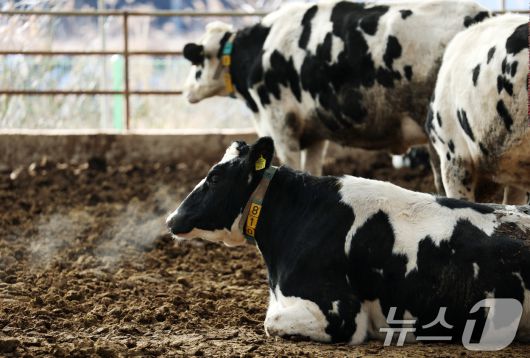 (화성=뉴스1) 김영운 기자 = 강력한 한파가 계속되고 있는 21일 경기 화성시 장안면의 한 축사에서 젖소들이 입김을 내뿜고 있다. 2026.1.21/뉴스1