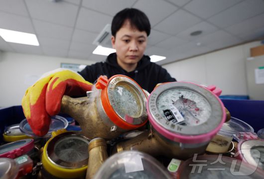 (서울=뉴스1) 김진환 기자 = 서울 전역에 한파주의보가 내려진 21일 서울 강북구 서울북부수도사업소에서 수도계량기 교체반 직원이 동파된 수도계량기를 정리하고 있다. 이날 서울시에 따르면 전날 오후 5시부터 이날 새벽 5시까지 수도 계량기 동파 13건이 집계됐다고 밝혔다. 한랭 질환자나 수도관 동결 피해는 발생하지 않았다. 2026.1.21/뉴스1