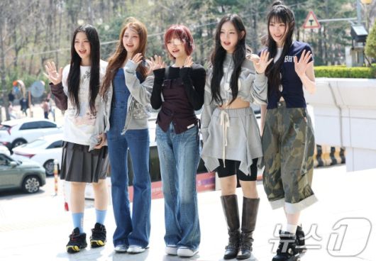 그룹 키키(kiiikiii)가 라디오 이은지의 가요광장 출연을 위해 지난해 4월 7일 서울 영등포구 KBS 본관으로 들어서며 인사를 하고 있다/사진=뉴스1 |