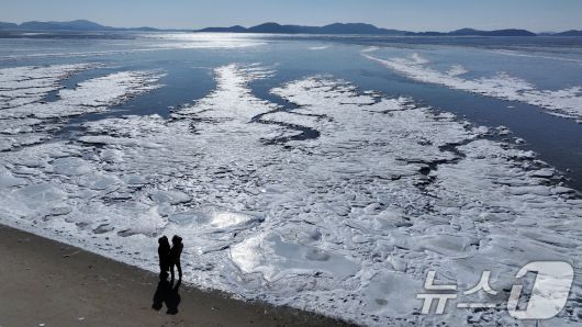 (강화=뉴스1) 박정호 기자 = 전국 곳곳에 한파특보가 발효돼 맹추위가 이어진 21일 인천 강화도 동막해변 일대가 얼어붙어 있다. 기상청에 따르면 전국 대부분 지역에서는 당분간 아침 기온이 -10도 안팎으로 떨어지고 바람도 강하게 불어 체감온도는 더욱 낮을 것으로 예보했다. 2026.1.21/뉴스1