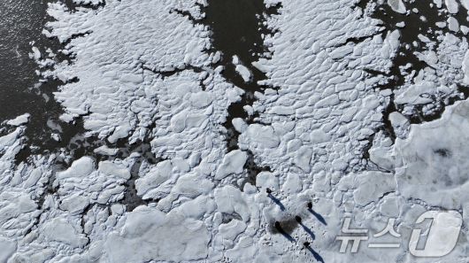 북극 한파에 얼어버린 바다