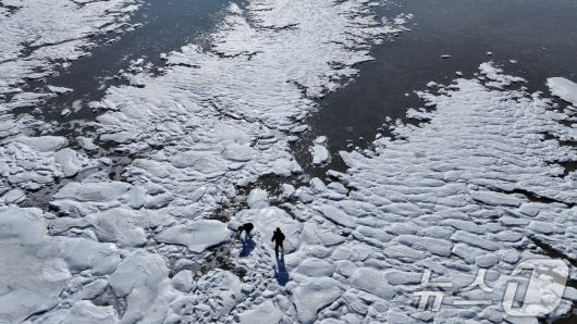 (강화=뉴스1) 박정호 기자 = 전국 곳곳에 한파특보가 발효돼 맹추위가 이어진 21일 인천 강화도 동막해변 일대가 얼어붙어 있다. 기상청에 따르면 전국 대부분 지역에서는 당분간 아침 기온이 -10도 안팎으로 떨어지고 바람도 강하게 불어 체감온도는 더욱 낮을 것으로 예보했다. 2026.1.21/뉴스1
