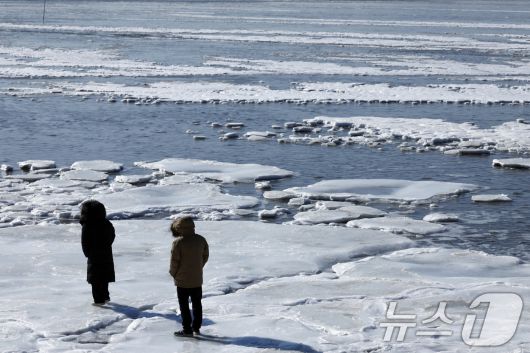 (강화=뉴스1) 박정호 기자 = 전국 곳곳에 한파특보가 발효돼 맹추위가 이어진 21일 인천 강화도 동막해변 일대가 얼어붙어 있다. 기상청에 따르면 전국 대부분 지역에서는 당분간 아침 기온이 -10도 안팎으로 떨어지고 바람도 강하게 불어 체감온도는 더욱 낮을 것으로 예보했다. 2026.1.21/뉴스1
