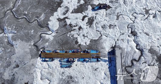 북극 한파에 얼어붙은 항구