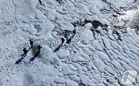 (강화=뉴스1) 박정호 기자 = 전국 곳곳에 한파특보가 발효돼 맹추위가 이어진 21일 인천 강화도 동막해변 일대가 얼어붙어 있다. 기상청에 따르면 전국 대부분 지역에서는 당분간 아침 기온이 -10도 안팎으로 떨어지고 바람도 강하게 불어 체감온도는 더욱 낮을 것으로 예보했다. 2026.1.21/뉴스1