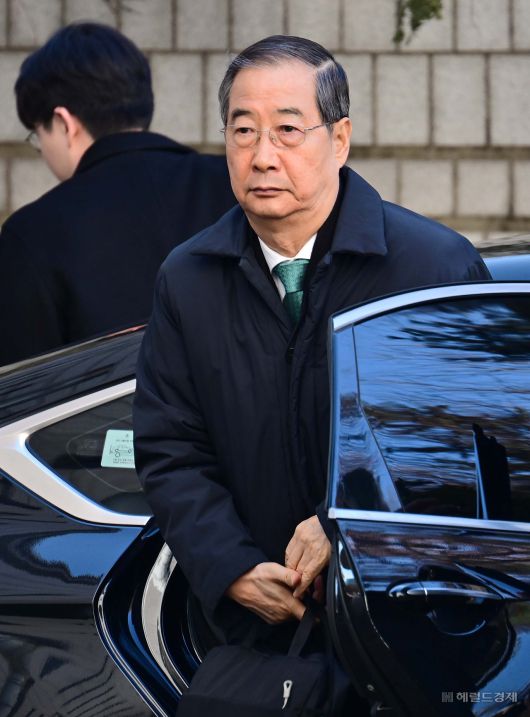 [헤럴드경제=이상섭 기자] 내란 우두머리 방조 혐의를 받는 한덕수 전 국무총리가 21일 오후 서울 서초구 서울중앙지법에서 열린 1심 선고 공판에 출석하고 있다.