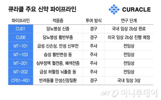 큐라클 주요 신약 파이프라인/그래픽=윤선정 |