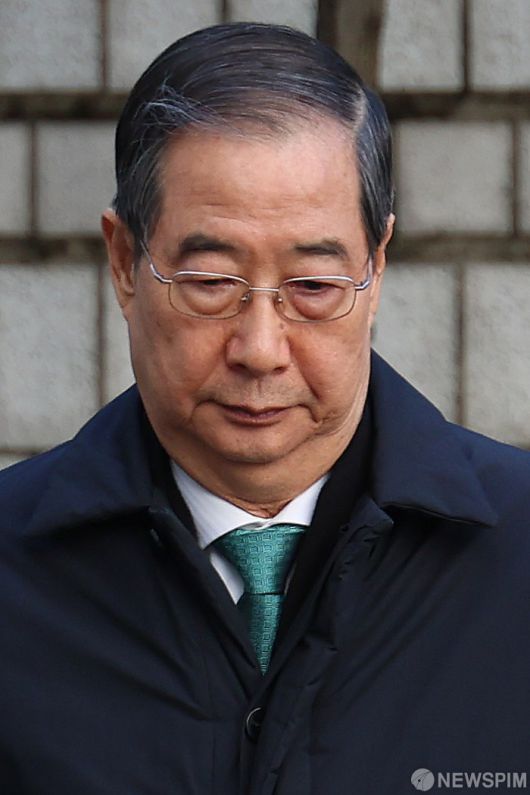 [서울=뉴스핌] 류기찬 기자 = 한덕수 전 국무총리가 21일 오후 서울 서초구 서울중앙지방법원에서 열린 내란 방조 및 내란 중요임무 종사 혐의 관련 1심 선고 공판에 출석하고 있다. 2026.01.21 ryuchan0925@newspim.com