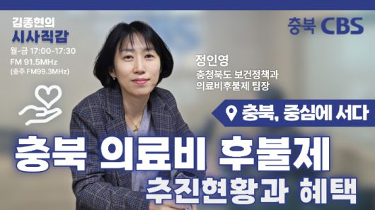◇ 김종현> <시사직감>은 매주 화요일 이 시간 <충북, 중심에 서다> 코너로 여러분 만나 뵙고 있습니다. <충북, 중심에 서다>는 충청북도가 추진하는 다양한 정책과 현안을 각 실국의 책임자, 담당자들이 직접 출연해서 여러분께 전해드리는 시간이죠. 오늘은 정인영 충청북도 의료비후불제팀장과 의료비후불제의 추진 현황 그리고 올해 확대된 혜택까지 두루 이야기 나눴습니다.