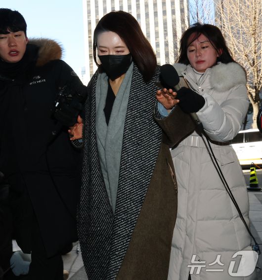 (서울=뉴스1) 오대일 기자 = 김병기 의원의 공천헌금 수수·아들 부정 편입 의혹의 핵심으로 지목되는 이지희 동작구의원이 21일 오후 서울 마포구 서울경찰청 공공범죄수사대에서 피의자 신분으로 조사를 받기 위해 출석하고 있다. 2026.1.21/뉴스1