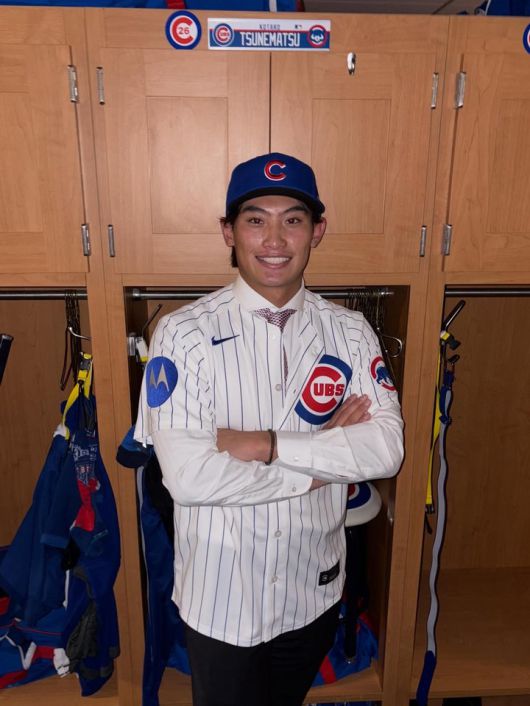 시카고 컵스와 마이너리그 계약을 체결한 게이오대 출신 외야수 츠네마츠 코타로가 지난 19일 일본 요코하마에서 기자회견을 열고 메이저리그 도전에 나선 배경을 밝혔다.