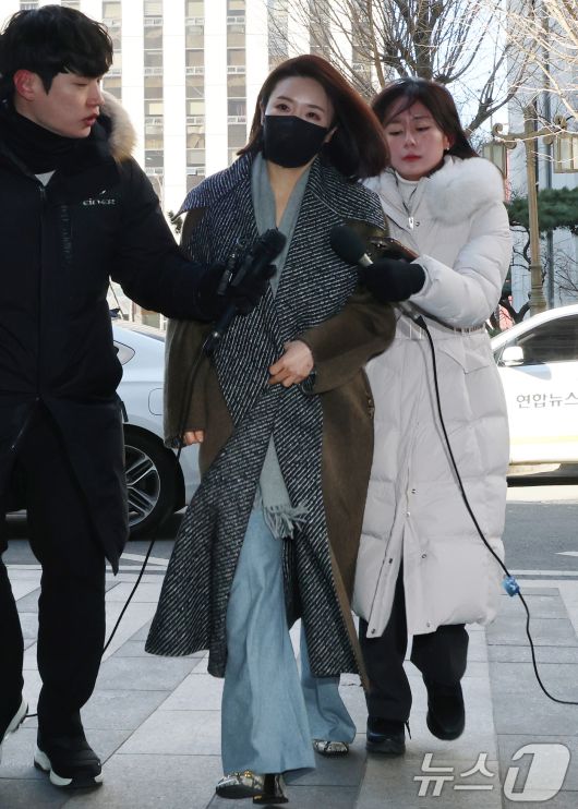 (서울=뉴스1) 오대일 기자 = 김병기 의원의 공천헌금 수수·아들 부정 편입 의혹의 핵심으로 지목되는 이지희 동작구의원이 21일 오후 서울 마포구 서울경찰청 공공범죄수사대에서 피의자 신분으로 조사를 받기 위해 출석하고 있다. 2026.1.21/뉴스1