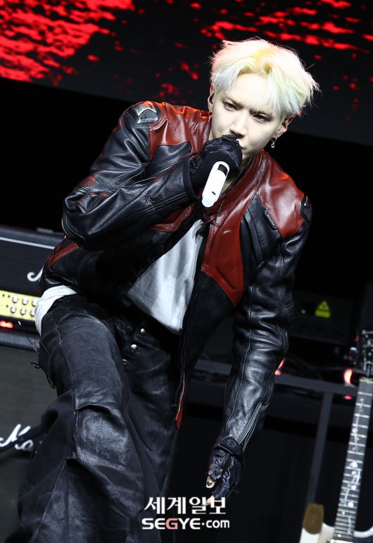 그룹 에이엠피 하유준이 21일 오후 서울시 서대문구 예스24 원더로크홀에서 열린 첫 번째 미니 앨범 'Amplify My Way(앰플리파이 마이 웨이)' 쇼케이스에 참석해 열띤 공연을 펼치고 있다.