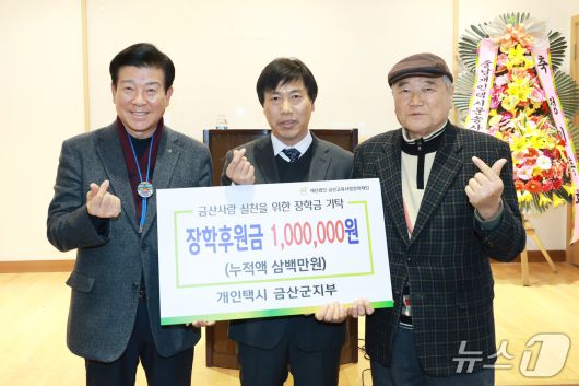 (금산=뉴스1) 박찬수 기자 = 충남 금산군은 개인택시 금산군지부(지부장 전경철)가 금산교육사랑장학재단에 100만 원을 기부했다고 21일 밝혔다.