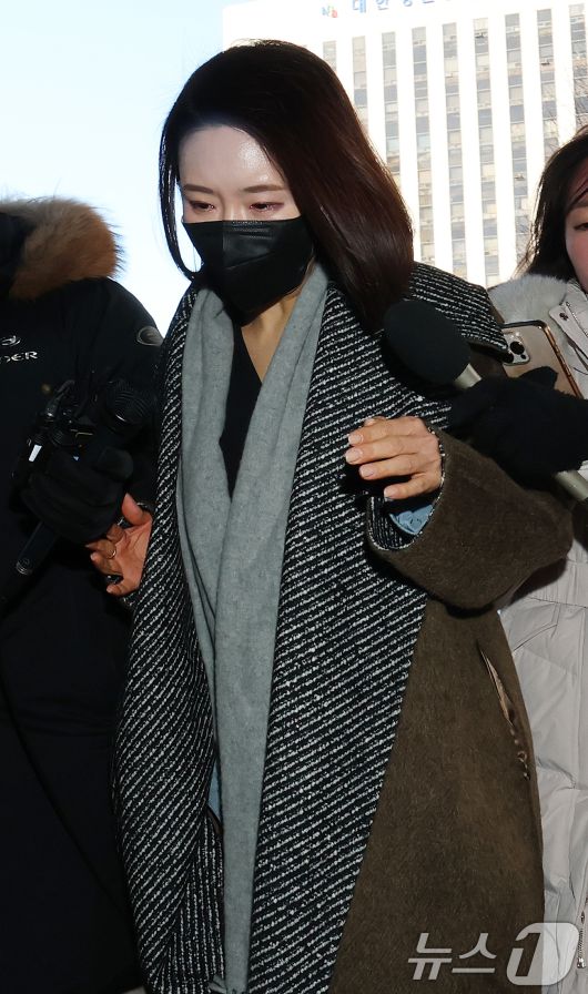 (서울=뉴스1) 오대일 기자 = 김병기 의원의 공천헌금 수수·아들 부정 편입 의혹의 핵심으로 지목되는 이지희 동작구의원이 21일 오후 서울 마포구 서울경찰청 공공범죄수사대에서 피의자 신분으로 조사를 받기 위해 출석하고 있다. 2026.1.21/뉴스1