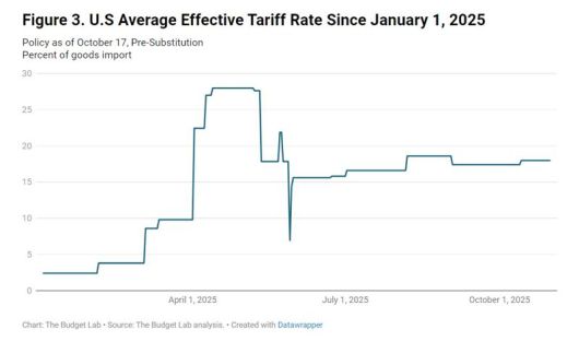 미국 예일대학교 산하 연구기관인 예산 연구소에 따르면 지난해 1월 2일 기준 2.4%였던 미국의 평균 실효 관세율은 지난해 4월 27.99%까지 올랐다가 같은 해 10월 말 기준 17.98%에 머물고 있다. 독일 싱크탱크인 킬세계경제연구소(IFW)는 19일 보고서에서 트럼프 정부가 부과한 관세 가운데 외국 수출업체가 부담한 비율은 4%이며 96%는 미국 소비자에게 전가되었다고 주장했다.