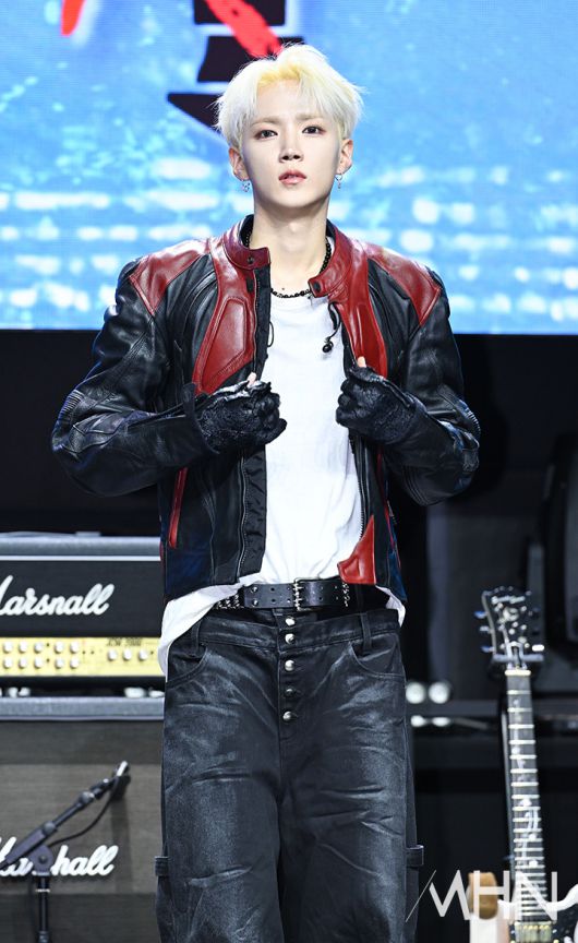 (MHN 이현지 기자) 신인 보이 밴드 에이엠피(AxMxP) 하유준이 21일 오후 서울 서대문구 예스24 원더로크홀에서 진행된 첫 미니앨범 '앰플리파이 마이 웨이'(Amplify My Way) 쇼케이스에서 포토타임을 갖고 있다.