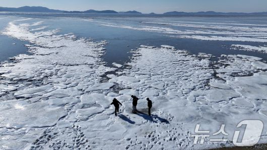 전국 곳곳에 한파특보가 발효돼 맹추위가 이어진 21일 인천 강화도 분오항 일대가 얼어붙어 있다. 2026.1.21/뉴스1 ⓒ News1 박정호 기자 |