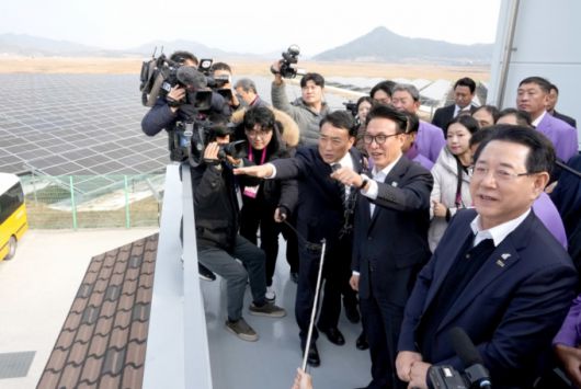 김민석 국무총리와 김영록 전라남도지사가 29일 신안 안좌솔라시티 태양광 발전단지를 방문해 현장에 관한 설명을 듣고 있다.(전남도 제공. 재판매 및 DB금지) 2025.12.29/뉴스1 Copyright (C) 뉴스1. All rights reserved. 무단 전재 및 재배포, AI학습 이용 금지. /사진=뉴스1 |