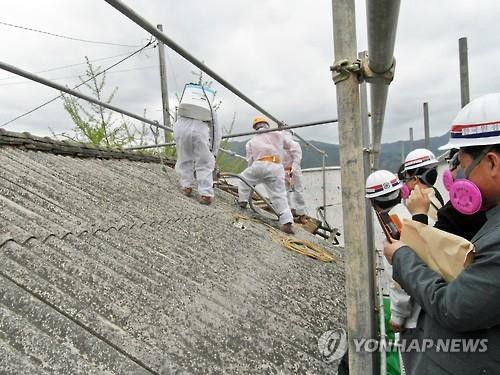 석면 슬레이트 지붕 철거 작업 |