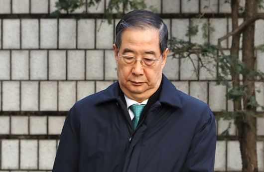 12·3 비상계엄 관련 내란 방조 등 혐의를 받는 한덕수 전 국무총리가 21일 서울 서초구 서울중앙지법에서 열린 1심 선고공판에 출석하고 있다. 뉴시스 ⓒ 세상을 보는 눈, 세계일보
