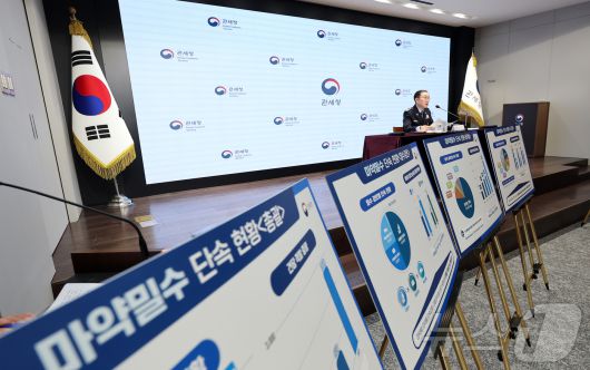 (서울=뉴스1) 김진환 기자 = 이명구 관세청장이 21일 오후 서울 강남구 논현동 서울세관에서 열린 '25년 마약밀수 단속현황' 브리핑에서 발언하고 있다. 관세청은 지난 2025년 한 해 동안 국경단계에서 총 1,256건, 2,218kg의 마약류를 적발했다고 밝혔다. 건수와 중량 모두 역대 최고치이다. 2026.1.21/뉴스1