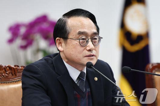 (과천=뉴스1) 김도우 기자 = 허철훈 중앙선관위 사무총장이 21일 경기 과천 중앙선거관리위원회에서 열린 2026년도 주요업무계획 회의 및 청렴실천 서약식에서 모두 발언을 하고 있다. 2026.1.21/뉴스1pizza@news1.krCopyright ⓒ 뉴스1. All rights reserved. 무단 전재 및 재배포, AI학습 이용 금지.