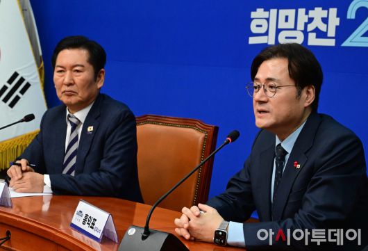 [포토] 정청래 대표 예방 인사말하는 홍익표 신임 정무수석