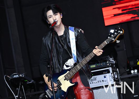 (MHN 이현지 기자) 신인 보이 밴드 에이엠피(AxMxP) 주환이 21일 오후 서울 서대문구 예스24 원더로크홀에서 진행된 첫 미니앨범 '앰플리파이 마이 웨이'(Amplify My Way) 쇼케이스에서 신곡을 선보이고 있다.