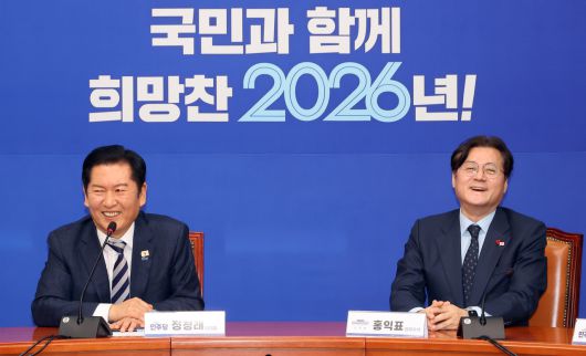 정 대표는 홍 정무수석을 향해 “정무수석으로 최상의 카드”라고 치켜세웠다. 정 대표는 “이재명 대통령 당 대표 시절 체포동의안 가결 사태 때 녹색 병원에 입원하신 적 있다. 그때 당의 혼란, 당원들의 분노, 의원들의 혼란을 수습할 수 있는 원내대표로 홍익표 의원이 적임자라 생각했다”며 “원내대표 취임해서 당 어려움을 극복하는 데 큰 역할을 해주셨다”고 말했다.