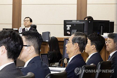 한덕수 전 국무총리, 법정 출석(서울=연합뉴스) 한덕수 전 국무총리(왼쪽 세 번째)가 지난해 9월 30일 서울 서초구 서울중앙지법에서 열린 내란 우두머리 방조 혐의 첫 공판에 출석해 있다. 2025.9.30 [사진공동취재단] photo@yna.co.kr ▶제보는 카카오톡 okjebo▶연합뉴스 앱 지금 바로 다운받기~▶네이버 연합뉴스 채널 구독하기<저작권자(c) 연합뉴스, 무단 전재-재배포, AI 학습 및 활용 금지>