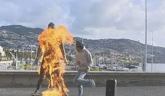 현지시간 20일 데일리메일 등 외신에 따르면 마데이라섬 푼샬에 설치된 크리스티아누 호날두 동상이 한 남성에 의해 불에 타는 사건이 발생했습니다.