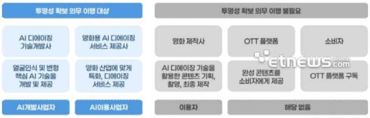 인공지능(AI)기본법 'AI 투명성 확보 가이드라인' 중 의무 이행 대상. ⓒ과기정통부 |