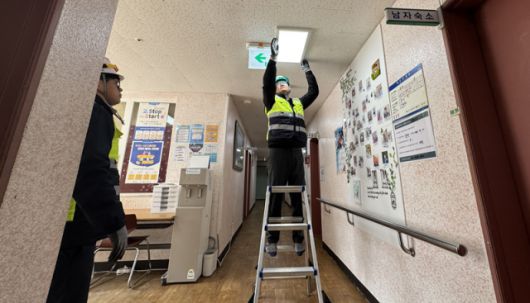 한전KDN 에너지 복지서비스 “따밝동행” 2차 사업 실천으로 노후 조명 시설을 교체하고 있다. [사진=한전KDN] |